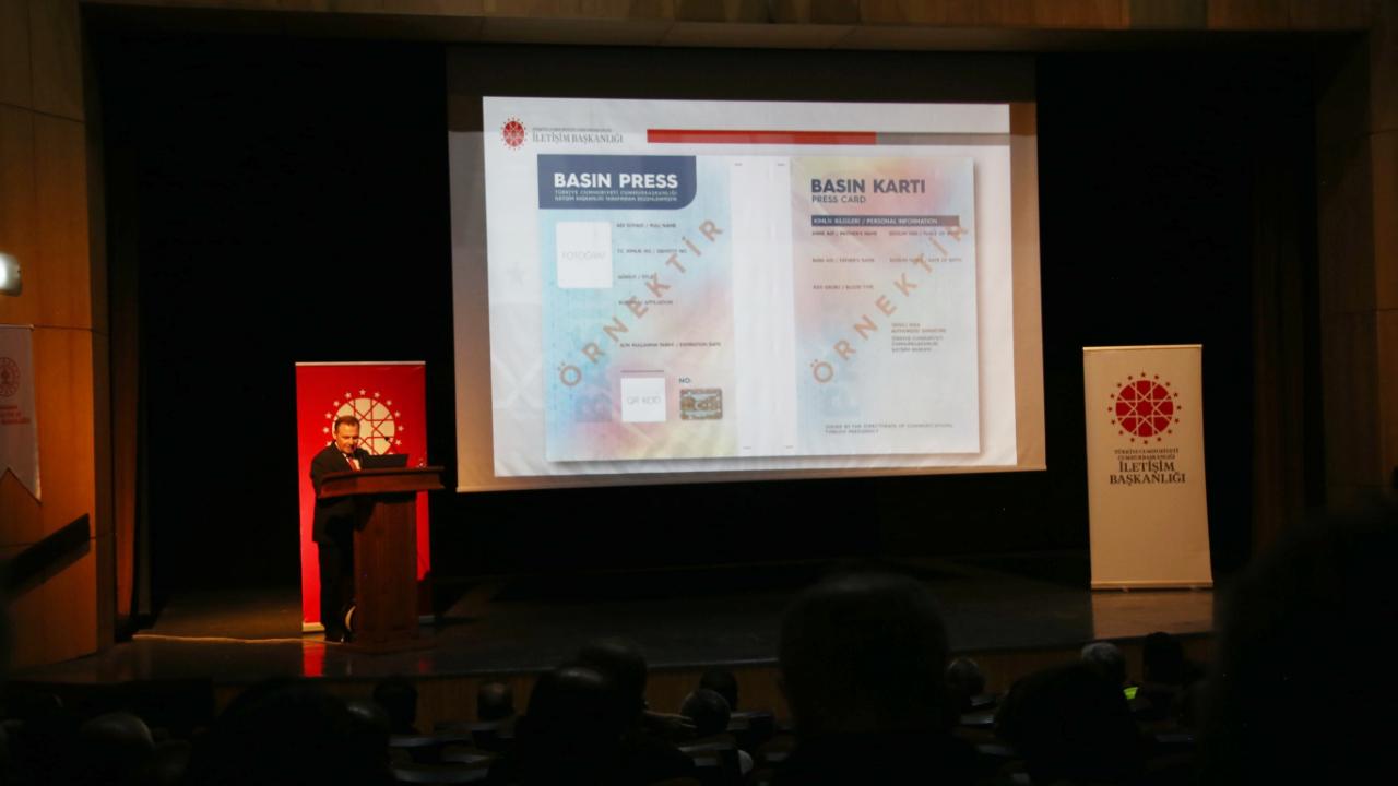 Seminerde, Basın Kanunu ve Basın Kartı Yönetmeliği hükümlerine yer verilerek basın kartı sahibi basın mensuplarının mesleklerini yerine getirirken, habere ulaşmada sağlanabilecek kolaylıklar anlatıldı. Seminerde ayrıca, dizgi, fon, tertip, şekil ve renk bakımından basın kartı ve basın trafik kartlarının orijinal örnekleri sunumda gösterilerek, yetkisiz kişilerce düzenlenen sahte kartların orijinalinden ayırt edilebilmesi, QR kod uygulaması hakkında uygulamalı olarak bilgilendirme yapıldı. Sunumda, İletişim Başkanlığınca düzenlenen resmi nitelikte bir kimlik belgesi olan basın kartlarına benzer sahte kartların düzenlenmesinin, 5237 sayılı Türk Ceza Kanunu’nun 204 üncü maddesi hükümleri gereğince 'Resmi Belgede Sahtecilik' suçunu oluşturduğu belirtildi.