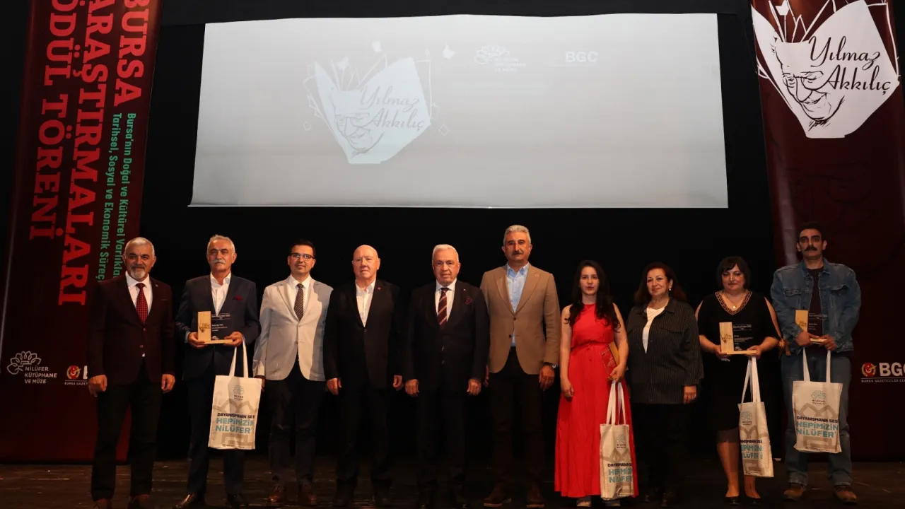 BURSA - Bursa’nın kültürel, tarihi ve akademik birikimine ışık tutan araştırmacıları teşvik etmek amacıyla bu yıl 16’ncı kez düzenlenen Yılmaz Akkılıç Bursa Araştırmaları Ödülleri sahiplerini buldu. Uğur Mumcu Sahnesi’nde düzenlenen ödül törenine; Nilüfer Belediye Başkanı Şadi Özdemir, CHP Bursa İl Başkanı Nihat Yeşiltaş, eski Başbakan Yardımcısı Ertuğrul Yalçınbayır, sivil toplum kuruluşu temsilcileri, akademisyenler, gazeteciler ve çok sayıda davetli katıldı.